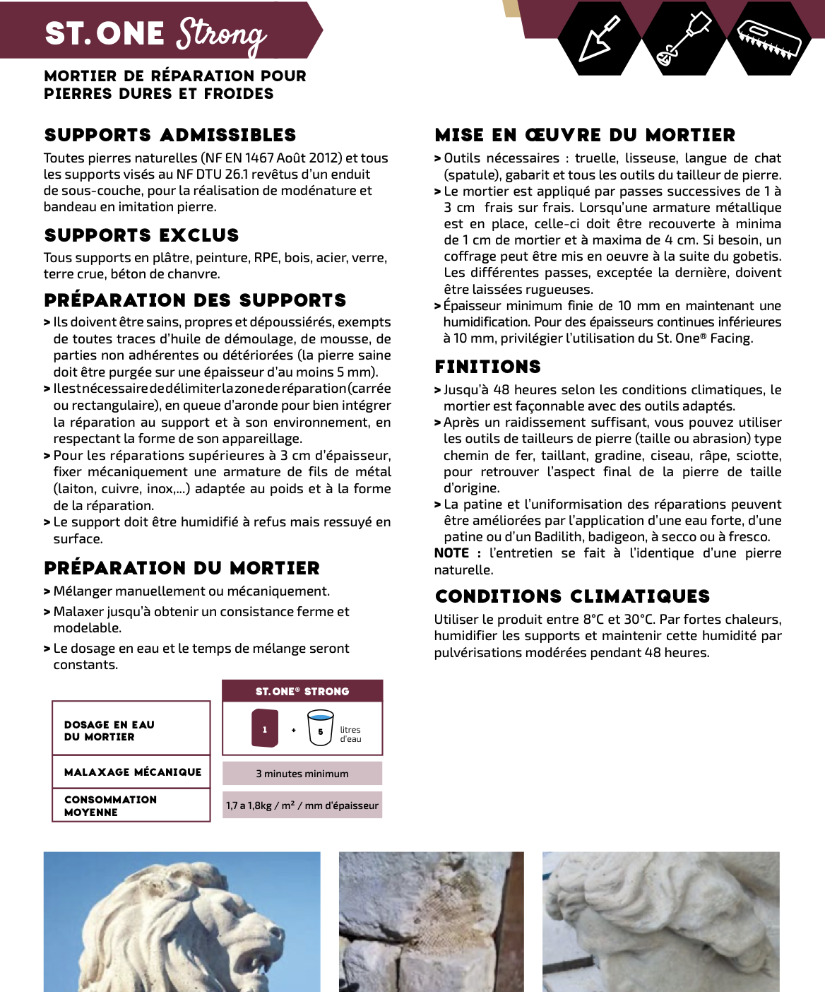 - Mortier minéral spécialement étudié pour la reconstruction en épaisseur des parements (ornements architecturaux), taillés et sculptés en pierres dures et froides.